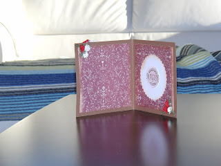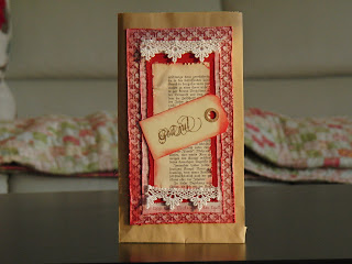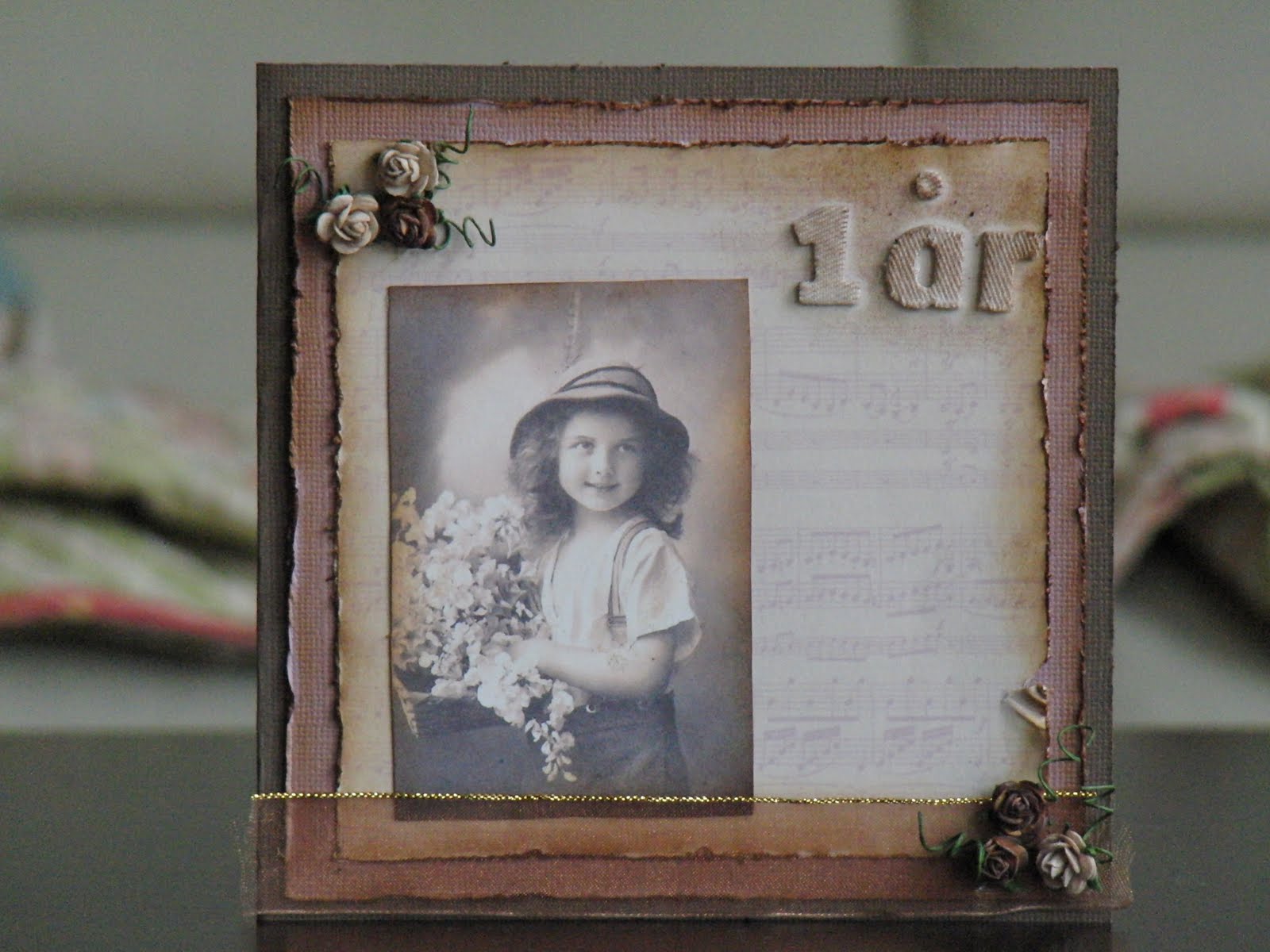 Nissen fargelagt med promakers sine følgende farger: poppy, crimson, berry red, warm grey 2,4 og 5, cocoa, burnt umber, henna, pastel pink, blush, ivory, buttercup, soft lime. Kanter svertet med brushed corduroy distress ink.