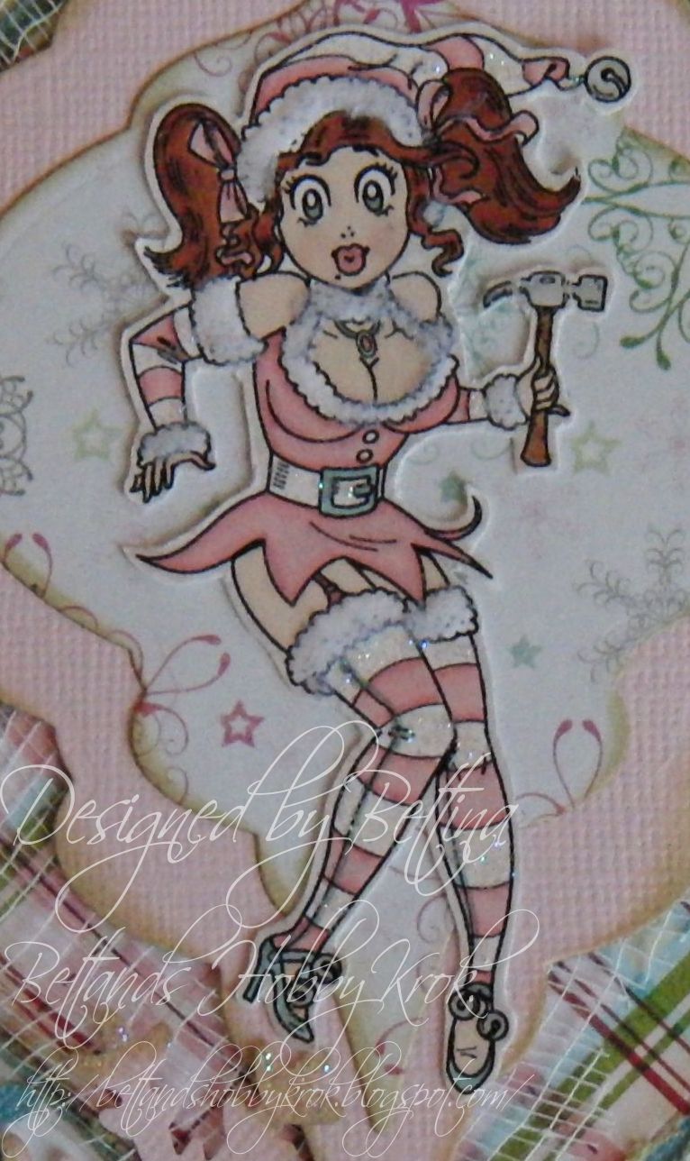 My image is from Robyn's Fetish and is called Sarah's Christmas. She is coloured with these promarkers: dusky pink, ivory, pastel pink, putty, dusky rose, pale pink, baby pink, marsh green, moss, pear green, crimson, poppy, red berry, china blue, cornflower, blue pearl, denim blue, grey green, tea green, cocoa, cinnamon and ice grey 1.