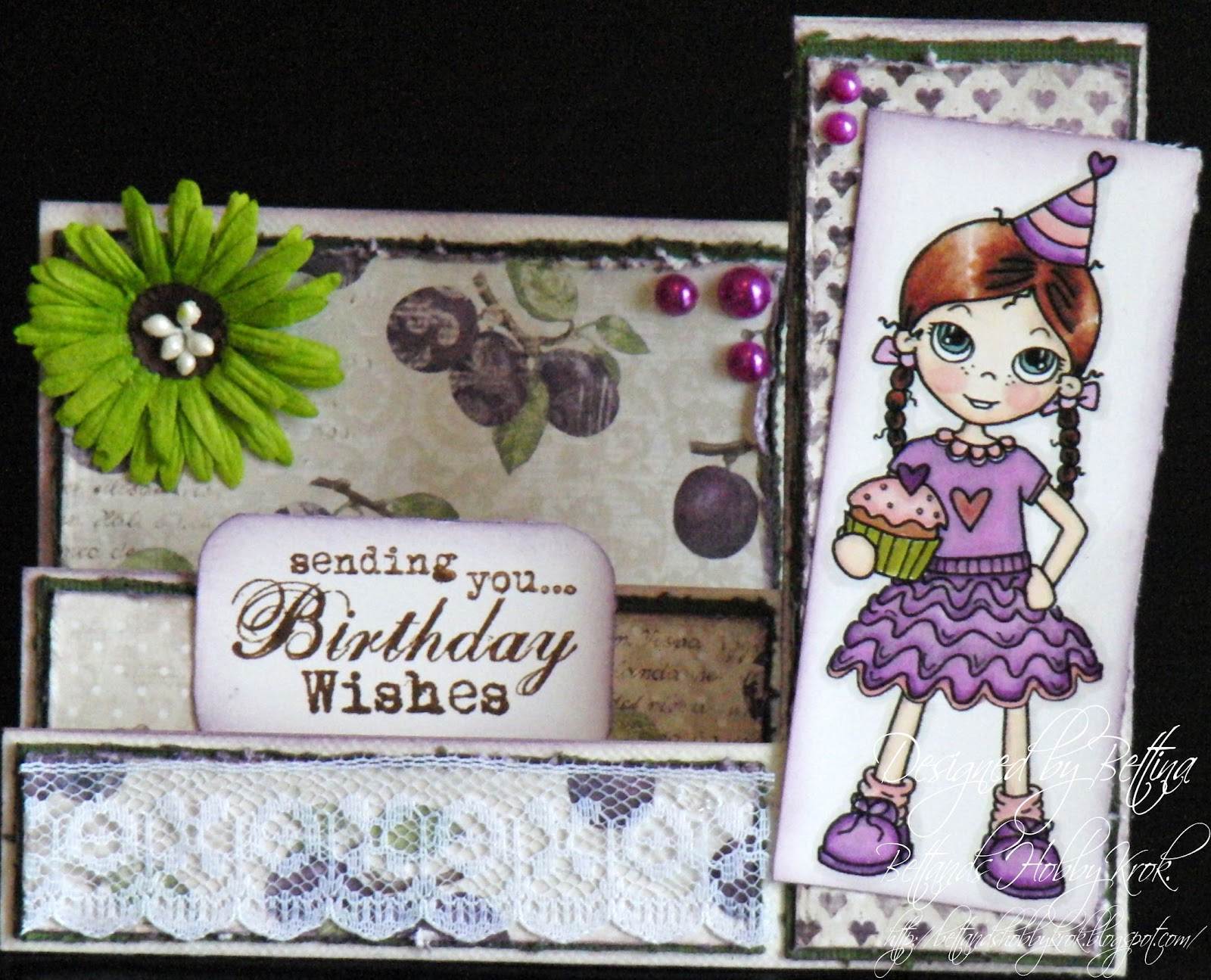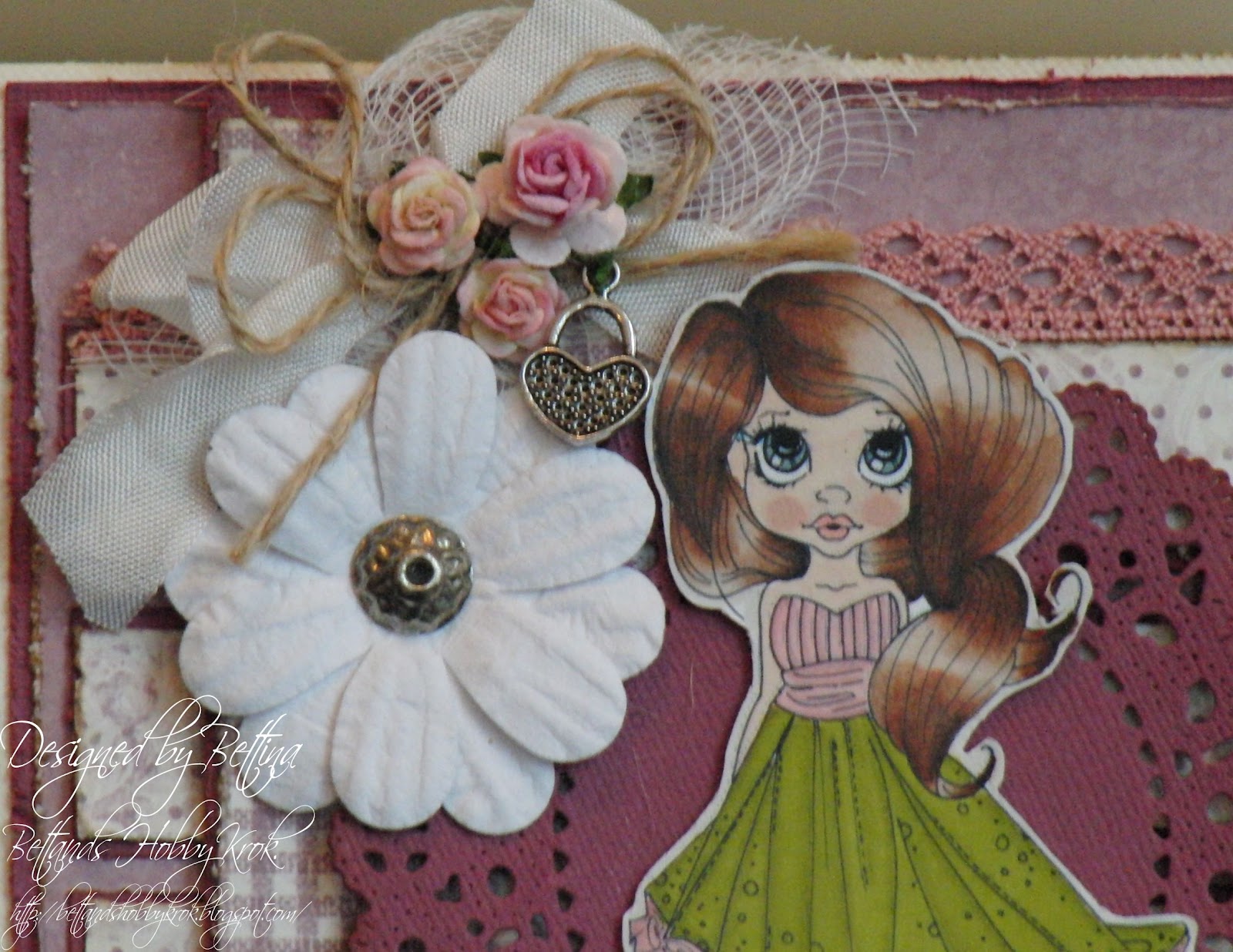 My project for this challenge is a shaped card for once;) I did an oval shaped card and I was so lucky to get to use one of Kristas lovely images for this challenge and it was a joy to colour her up!!